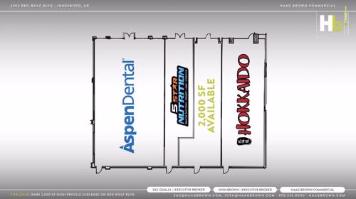 - 1,500 SF of HIGH PROFILE Lease Space Along Red Wolf Blvd.